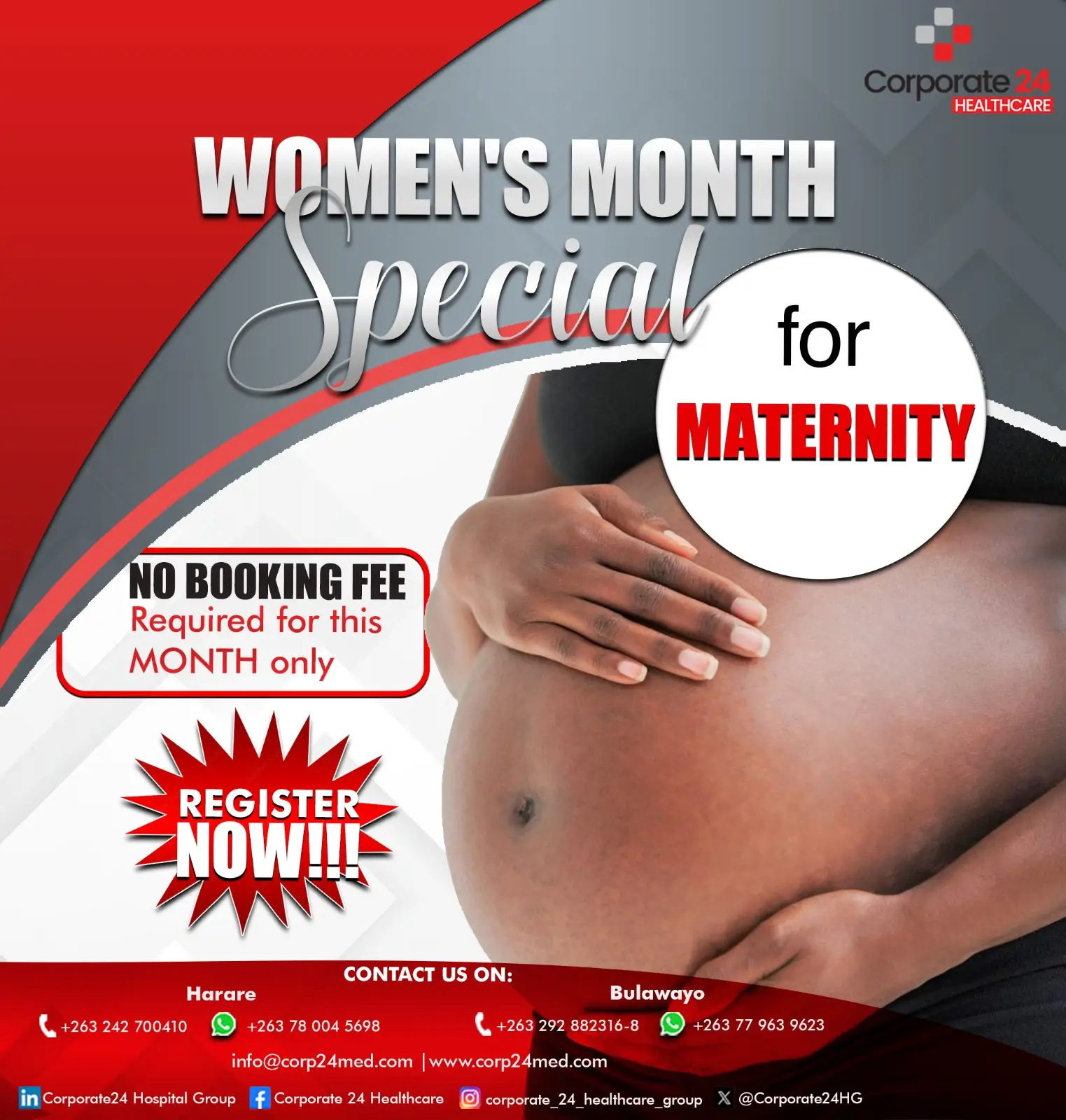 If you are in need of exceptional healthcare services in Harare and Bulawayo Zimbabwe, look no further than Corporate 24 hospitals Our dedicated team of medical professionals is ready to assist you and provide the highest level of care. Contact us today to schedule an appointment or learn more about our services. Your health is our priority, and we are here to help you on your path to wellness.